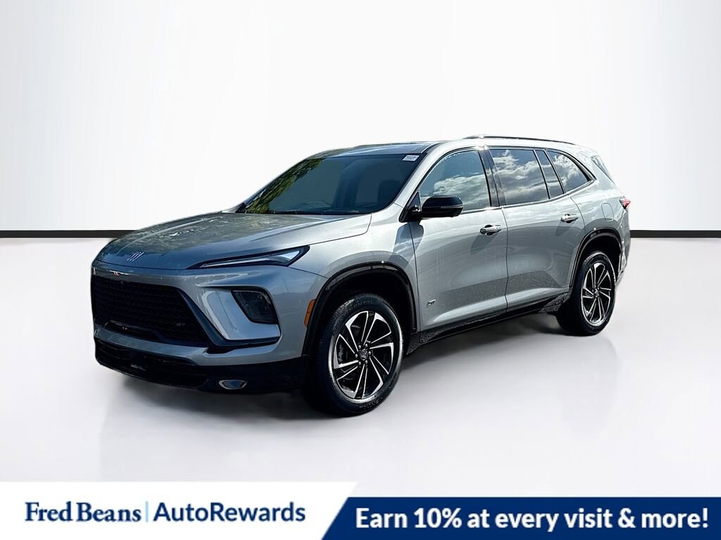 Moonstone Gray Metallic 2026 Buick Enclave Sport Touring FWD 8-Speed Automatic 2.5L DOHC FWD, 110-Volt Power Outlet, 12 Speakers, 2nd Row 1-Touch Flat Folding Seat, 3rd Row 60/40 Power Split-Folding Bench, 3rd row seats: split-bench, 4-Wheel Disc Brakes, ABS brakes, Air Conditioning, Alloy wheels, AM/FM radio: SiriusXM with 360L, Apple CarPlay/Android Auto, Auto High-beam Headlights, Auto-dimming door mirrors, Auto-dimming Rear-View mirror, Automatic temperature control, Bose Premium 12-Speaker Audio System, Brake assist, Bumpers: body-color, Compass, Delay-off headlights, Driver 4-Way Power Lumbar Seat Adjuster, Driver 8-Way Power Seat Adjuster, Driver door bin, Driver vanity mirror, Dual front impact airbags, Dual front side impact airbags, Electronic Stability Control, Emergency communication system: OnStar and Buick connected services capable, Four wheel independent suspension, Front anti-roll bar, Front Bucket Seats, Front Center Armrest, Front dual zone A/C, Front Passenger 4-Way Power Lumbar Seat Adjuster, Front Passenger 6-Way Power Seat Adjuster, Front reading lights, Fully automatic headlights, Head-Up Display, Heated door mirrors, Heated Driver & Front Passenger Seats, Heated front seats, Heated steering wheel, Heated Wiper Park, Illuminated entry, Inside Rearview Auto-Dimming Rear Camera Mirror, Leather steering wheel, Low tire pressure warning, Memory Settings, Navigation System, Occupant sensing airbag, Outside temperature display, Overhead airbag, Overhead console, Panic alarm, Passenger door bin, Passenger vanity mirror, Perforated Leatherette Seat Trim, Power door mirrors, Power driver seat, Power Liftgate, Power Package, Power Panoramic Sunroof w/Sunshade, Power passenger seat, Power steering, Power windows, Preferred Equipment Group 1SM, Premium audio system: Buick Infotainment System, Radio data system, Radio: Infotainment Center, Rear air conditioning, Rear anti-roll bar, Rear reading lights, Rear side impact airbag, Rear window defroster, Rear window wiper, Remote keyless entry, Security system, SiriusXM w/360L Trial Subscription, Speed control, Speed-sensing steering, Spoiler, Sport steering wheel, Steering wheel mounted audio controls, Tachometer, Telescoping steering wheel, Tilt steering wheel, Traction control, Trip computer, Turn signal indicator mirrors, Universal Home Remote, Variably intermittent wipers, Voltmeter, Wheels: 20 Alloy w/High Gloss Black, Wireless Apple CarPlay, Wireless Google Android Auto, FWD.