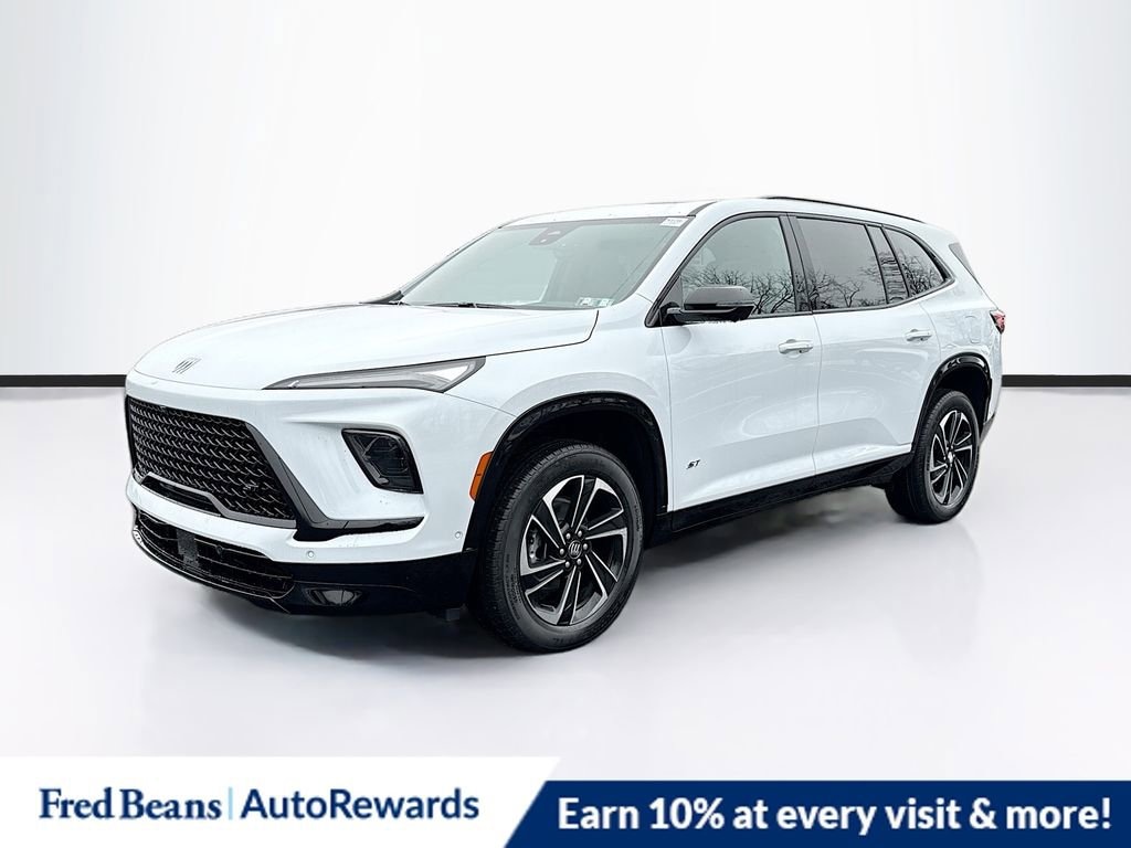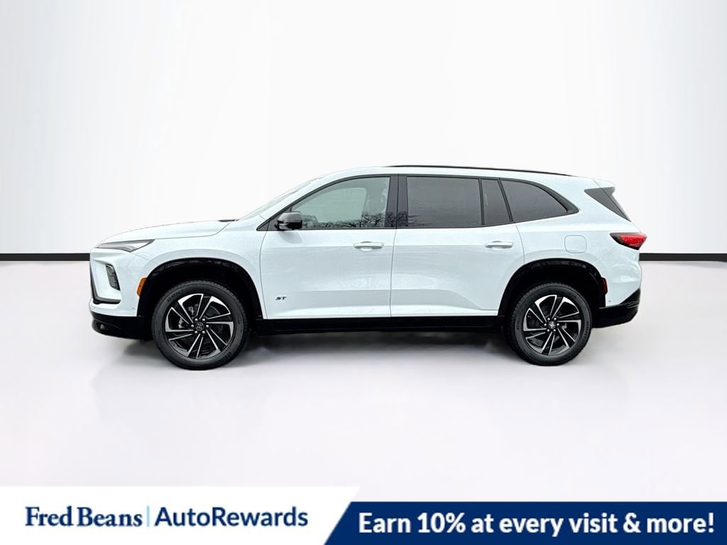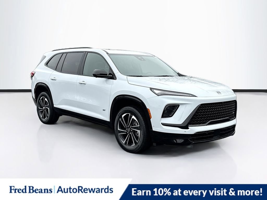 iridescent white tricoat 2026 Buick Enclave Sport Touring AWD 8-Speed Automatic 2.5L DOHC AWD, 110-Volt Power Outlet, 12 Speakers, 2nd Row 1-Touch Flat Folding Seat, 3rd Row 60/40 Power Split-Folding Bench Seat, 3rd row seats: split-bench, 4-Wheel Disc Brakes, ABS brakes, Air Conditioning, Alloy wheels, AM/FM radio: SiriusXM with 360L, Apple CarPlay/Android Auto, Auto High-beam Headlights, Auto-dimming door mirrors, Auto-dimming Rear-View mirror, Automatic temperature control, Bose Premium 12-Speaker Audio System with Subwoofer, Brake assist, Bumpers: body-color, Compass, Delay-off headlights, Driver 4-Way Power Lumbar Seat Adjuster, Driver 8-Way Power Seat Adjuster, Driver Attention Assist, Driver door bin, Driver vanity mirror, Dual front impact airbags, Dual front side impact airbags, Electronic Stability Control, Emergency communication system: OnStar and Buick connected services capable, Enhanced Automatic Parking Assist, Four wheel independent suspension, Front anti-roll bar, Front Bucket Seats, Front Center Armrest, Front dual zone A/C, Front Passenger 4-Way Power Lumbar Seat Adjuster, Front Passenger 6-Way Power Seat Adjuster, Front reading lights, Fully automatic headlights, Head-Up Display, Heated door mirrors, Heated Driver and Front Passenger Seats, Heated front seats, Heated steering wheel, Heated Wiper Park, Illuminated entry, Inside Rearview Auo-Dimming Rear Camera Mirror, Leather steering wheel, Low tire pressure warning, Memory Settings, Navigation System, Occupant sensing airbag, Outside temperature display, Overhead airbag, Overhead console, Panic alarm, Passenger door bin, Passenger vanity mirror, Perforated Leatherette Seat Trim, Power door mirrors, Power driver seat, Power Liftgate, Power Package, Power Panoramic Sunroof with Sunshade, Power passenger seat, Power steering, Power windows, Preferred Equipment Group 1SM, Premium audio system: Buick Infotainment System, Radio data system, Radio: Infotainment Center, Rear air conditioning, Rear anti-roll bar, Rear reading lights, Rear side impact airbag, Rear window defroster, Rear window wiper, Remote keyless entry, Security system, SiriusXM with 360L Trial Subscription, Speed control, Speed-sensing steering, Spoiler, Sport steering wheel, Steering wheel mounted audio controls, Super Cruise, Super Cruise Package, Tachometer, Telescoping steering wheel, Tilt steering wheel, Traction control, Trip computer, Turn signal indicator mirrors, Universal Home Remote, Variably intermittent wipers, Voltmeter, Wheels: 20 Alloy with High Gloss Black and Machine Finish, Wireless Apple CarPlay, Wireless Google Android Auto, AWD.