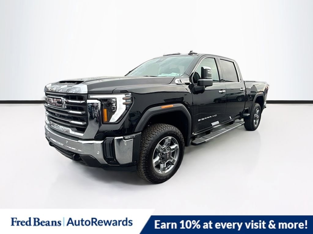 Onyx Black 2025 GMC Sierra 2500HD SLT 4WD 10-Speed Automatic Duramax 6.6L V8 Turbodiesel 10-Speed Automatic, 4WD, Jet Black Leather, 10-Way Power Driver Seat Adjuster w/Lumbar, 10-Way Power Passenger Seat Adjuster w/Lumbar, 120-Volt Bed Mounted Power Outlet, 120-Volt Instrument Panel Power Outlet, 18 Machined Aluminum Wheels, 2 Charge-Only Rear USB Ports, 2 Charge/Data USB Ports, 2 Charge/Data USB Ports Inside Center Console, 2-Speed Active Transfer Case, 220-Amp Alternator, 4-Wheel Disc Brakes, 6 Speakers, 6-Speaker Audio System Feature, 6 Rectangular Chromed Tubular Assist Steps, ABS brakes, Adaptive Cruise Control, Air Conditioning, Alloy wheels, AM/FM radio: SiriusXM with 360L, Apple CarPlay/Android Auto, Auto High-beam Headlights, Auto-dimming door mirrors, Auto-dimming Rear-View mirror, Automatic Emergency Braking, Automatic temperature control, Bed View Camera w/2 Trailer Camera Provisions, Bose Premium 7-Speaker Sound System, Brake assist, Buckle to Drive, Bumpers: chrome, Chrome Surround Grille w/Chrome Insert Bars, Compass, Deep-Tinted Glass, Delay-off headlights, Driver door bin, Driver Memory, Driver vanity mirror, Dual front impact airbags, Dual front side impact airbags, Electric Rear-Window Defogger, Electronic Stability Control, Emergency communication system: OnStar, Engine Block Heater, Exhaust Brake, Floor-Mounted Center Console, Following Distance Indicator, Forward Collision Alert, Front 40/20/40 Split-Bench Seats, Front anti-roll bar, Front Bucket Seats, Front Center Armrest w/Storage, Front dual zone A/C, Front fog lights, Front Pedestrian Braking, Front Rain-Sensing Wipers, Front reading lights, Front wheel independent suspension, Fully automatic headlights, HD Rear Vision Camera Delete, HD Surround Vision, Heated 2nd Row Outboard Seats, Heated door mirrors, Heated Driver & Front Outboard Passenger Seats, Heated front seats, Heated steering wheel, Heavy-Duty 80 Amp Battery, Hill Descent Control, Hitch Guidance w/Hitch View, Illuminated entry, In-Vehicle Trailering System App, IntelliBeam Automatic High Beam On/Off, Keyless Open & Start, Lane Departure Warning System, LED Cargo Area Lighting, LED Smoked Amber Roof Marker Lamps, Low tire pressure warning, Manual Tilt-Wheel/Telescoping Steering Column, Memory seat, Occupant sensing airbag, Off-Road Suspension, OnStar Services Capable, Outside temperature display, Overhead airbag, Overhead console, Panic alarm, Passenger door bin, Passenger vanity mirror, Perf Leather-Appointed Front Outboard Seat Trim, Pickup Box, Power door mirrors, Power driver seat, Power Front Passenger Windows w/Express Up/Down, Power passenger seat, Power Sliding Rear Window w/Defogger, Power steering, Power Sunroof, Power windows, Preferred Equipment Group 4SA, Push Button Start, Radio: AM/FM w/Premium GMC Infotainment System, Rain sensing wipers, Rear Cross Traffic Alert, Rear reading lights, Rear seat center armrest, Rear step bumper, Rear Wheelhouse Liners, Rear window defroster, Remote keyless entry, Remote Vehicle Starter System, Safety Alert Seat, Security system, Sierra HD Pro Safety Plus Package, SiriusXM w/360L Trial Subscription, SLT Convenience Package, SLT Preferred Package, SLT Premium Package, Speed control, Speed-sensing steering, Split folding rear seat, Spray-On Pickup Bedliner w/GMC Logo, Steering Wheel Audio Controls, Steering wheel mounted audio controls, Suspension Package, Tachometer, Telescoping steering wheel, Tilt steering wheel, Traction control, Trailer Cam Provisions & Trailer Viewing Software, Trailer Side Blind Zone Alert, Trip computer, Turn signal indicator mirrors, Ultrasonic Front & Rear Park Assist, Unauthorized Entry Theft-Deterrent System, Universal Home Remote, Variably intermittent wipers, Ventilated Driver & Front Passenger Seats, Voltmeter, Wheels: 20 Bright Face w/Dark Painted Pockets, Winter Grille Cover, Wireless Charging, Wireless Phone Projection, X31 Off-Road Package, 10-Speed Automatic, 4WD, Jet Black Leather.