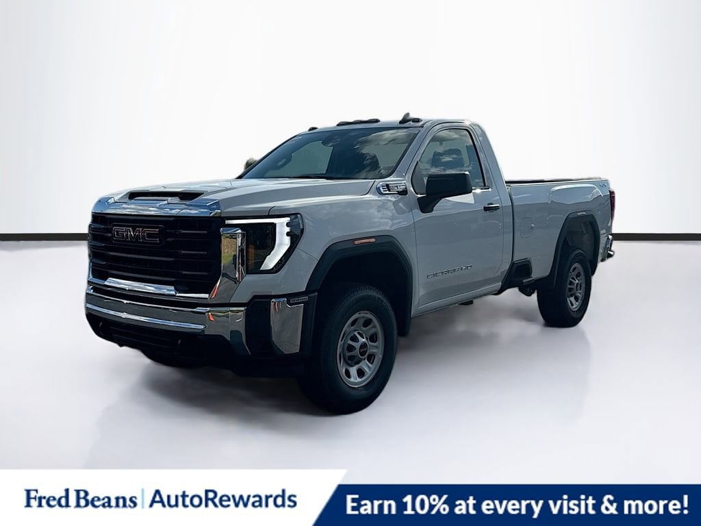 Summit White 2025 GMC Sierra 3500HD Pro 4WD 10-Speed Automatic 6.6L V8 10-Speed Automatic, 4WD, Black Cloth, 120-Volt Bed Mounted Power Outlet, 120-Volt Instrument Panel Power Outlet, 2 Charge/Data USB Ports, 2 Speakers, 2-Speaker Audio System Feature, 2-Speed Electronic Shift Transfer Case, 3.73 Rear Axle Ratio, 4-Way Manual Driver Seat Adjuster, 4-Way Manual Passenger Seat Adjuster, 4-Wheel Disc Brakes, ABS brakes, Air Conditioning, AM/FM radio, Auto High-beam Headlights, Automatic Emergency Braking, Brake assist, Buckle to Drive, Bumpers: chrome, Chrome Grille w/Flat Black Grille Insert Bars, Compass, Convenience Package, Deep-Tinted Glass, Delay-off headlights, Driver door bin, Dual front impact airbags, Dual front side impact airbags, Electric Rear-Window Defogger, Electronic Stability Control, Exterior Parking Camera Rear, EZ Lift Power Lock & Release Tailgate, Following Distance Indicator, Forward Collision Alert, Front 40/20/40 Split-Bench Seats w/Lockable Storage, Front anti-roll bar, Front Center Armrest w/Storage, Front Pedestrian Braking, Front reading lights, Front wheel independent suspension, Fully automatic headlights, Heated door mirrors, Heavy-Duty 80 Amp-Hr Battery, Illuminated entry, IntelliBeam Automatic High Beam On/Off, Lane Departure Warning System, LED Cargo Area Lighting, Low tire pressure warning, Occupant sensing airbag, Outside temperature display, Overhead airbag, Overhead console, Panic alarm, Passenger door bin, Passenger vanity mirror, Pickup Bed, Power door mirrors, Power steering, Power windows, Preferred Equipment Group 1SA, Push Button Start, Radio: AM/FM w/GMC Infotainment System, Rear step bumper, Remote Keyless Entry, Remote keyless entry, Solar Absorbing Tinted Glass, Speed control, Suspension Package, Tachometer, Tilt steering wheel, Traction control, Trip computer, Turn signal indicator mirrors, Variably intermittent wipers, Vinyl Seat Trim, Voltmeter, Wireless Phone Projection, 10-Speed Automatic, 4WD, Black Cloth.