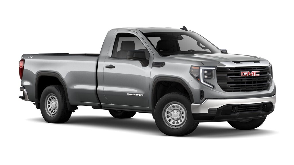 Sterling Metallic 2026 GMC Sierra 1500 Pro 4WD 8-Speed Automatic 2.7L I4 Turbocharged DOHC 16V LEV3-SULEV30 310hp 8-Speed Automatic, 4WD, Jet Black Vinyl, 2 Charge/Data USB Ports, 2 Speakers, 2-Speaker Audio System Feature, 220 Amp Alternator, 3.42 Rear Axle Ratio, 4-Way Manual Driver Seat Adjuster, 4-Way Manual Passenger Seat Adjuster, 4-Wheel Disc Brakes, ABS brakes, Air Conditioning, AM/FM radio, Apple CarPlay/Android Auto, Auto High-beam Headlights, Automatic Emergency Braking, Brake assist, Buckle to Drive, Bumpers: chrome, Chrome Header with Flat Black Grille Insert Bars, Compass, Delay-off headlights, Driver door bin, Dual front impact airbags, Dual front side impact airbags, Electronic Stability Control, Emergency communication system: OnStar, Following Distance Indicator, Forward Collision Alert, Front 40/20/40 Split-Bench Seat, Front anti-roll bar, Front Center Armrest w/Storage, Front Frame-Mounted Black Recovery Hooks, Front Pedestrian Braking, Front reading lights, Front wheel independent suspension, Fully automatic headlights, HD Rear Vision Camera, Heated door mirrors, Illuminated entry, IntelliBeam Automatic High Beam on/Off, Lane Keep Assist with Lane Departure Warning, Low tire pressure warning, Occupant sensing airbag, OnStar Services Capable, Outside temperature display, Overhead airbag, Overhead console, Panic alarm, Passenger door bin, Passenger vanity mirror, Power Door Locks, Power door mirrors, Power Front Windows with Driver Express Up/Down, Power Front Windows with Passenger Express Down, Power steering, Power windows, Push Button Start, Radio data system, Radio: GMC Infotainment Audio System, Rear reading lights, Rear step bumper, Remote Keyless Entry, Remote keyless entry, Solar Absorbing Tinted Glass, Speed control, Speed-sensing steering, Standard Suspension Package, Tachometer, Tilt steering wheel, Traction control, Trip computer, Variably intermittent wipers, Vinyl Seat Trim, Voltmeter, Wheels: 17 x 8 Silver Painted Steel, Wi-Fi Hotspot Capable, Wireless Apple CarPlay/Wireless Android Auto, 8-Speed Automatic, 4WD, Jet Black Vinyl.