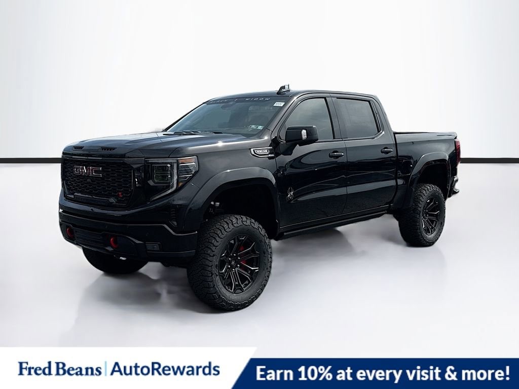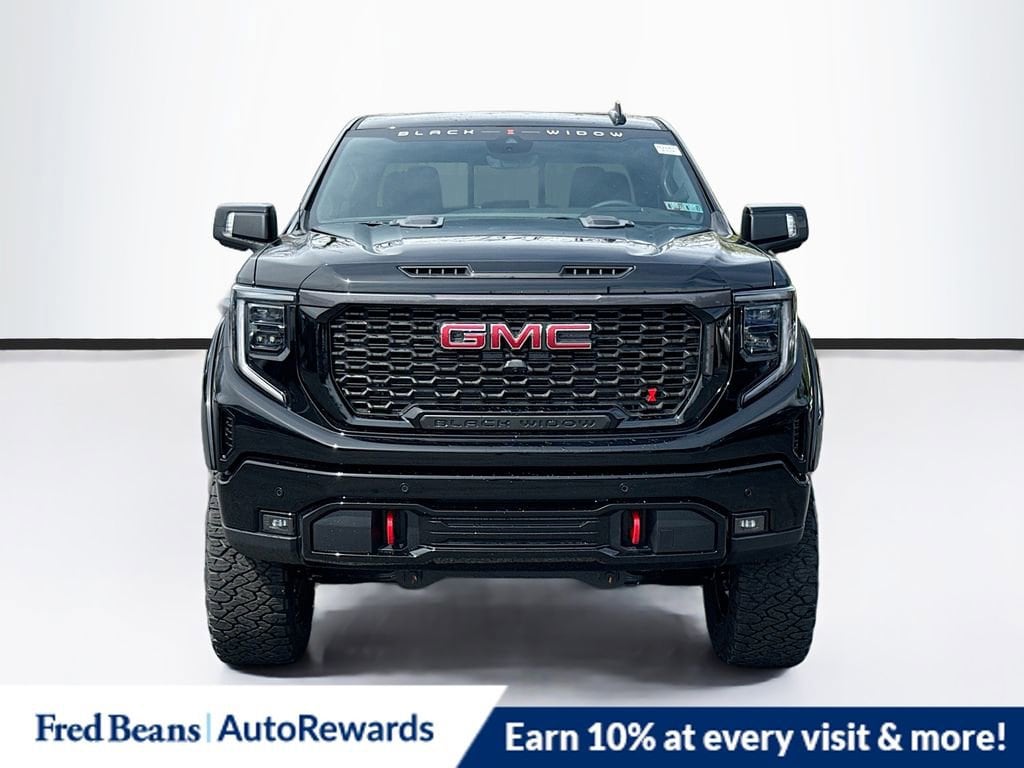 Onyx Black 2026 GMC Sierra 1500 AT4 Black Widow BLACK WIDOW 4WD 10-Speed Automatic EcoTec3 6.2L V8 10-Speed Automatic, 4WD, Jet Black With Kalahari Accents Leather, 10-Way Power Driver Seat Adjuster with Lumbar, 10-Way Power Passenger Seat Adjuster with Lumbar, 120-Volt Bed Mounted Power Outlet, 120-Volt Interior Power Outlet, 170 Amp Alternator, 2 Charge/Data USB Ports Inside Center Console, 2 Type-C Charge-Only Rear USB Ports, 2 USB Ports, 220 Amp Alternator, 3.23 Rear Axle Ratio, 4-Wheel Disc Brakes, 7 Speakers, ABS brakes, Air Conditioning, Alloy wheels, AM/FM radio: SiriusXM with 360L, Apple CarPlay/Android Auto, AT4 Preferred Package, AT4 Premium Package, Auto High-beam Headlights, Auto-dimming door mirrors, Auto-dimming Rear-View mirror, Auto-Locking Rear Differential, Automatic Emergency Braking, Automatic temperature control, Auxiliary External Transmission Oil Cooler, Bed View Camera, Black Chrome Grille Insert Bars, Black Sport Step, Block heater, Brake assist, Buckle to Drive, Bumpers: body-color, Color-Keyed Carpeting Floor Covering, Compass, Deep-Tinted Glass, Delay-off headlights, Driver door bin, Driver Memory, Driver vanity mirror, Dual Active Exhaust, Dual front impact airbags, Dual front side impact airbags, Electric Rear-Window Defogger, Electronic Stability Control, Emergency communication system: OnStar, External Engine Oil Cooling, Floor-Mounted Center Console, Following Distance Indicator, Forward Collision Alert, Front anti-roll bar, Front Bucket Seats, Front Center Armrest, Front dual zone A/C, Front fog lights, Front License Plate Kit, Front Pedestrian Braking, Front Premium Floor Liners with Removable Carpet Insert, Front Rain-Sensing Wipers, Front reading lights, Front wheel independent suspension, Fully automatic headlights, HD Surround Vision, Heated 2nd Row Outboard Seats, Heated door mirrors, Heated Driver and Front Outboard Passenger Seating, Heated front seats, Heated rear seats, Heated steering wheel, Heavy-Duty Air Filter, Hill Descent Control, Hitch Guidance, Hitch View, Illuminated entry, in-Vehicle Trailering System App, Integrated Trailer Brake Controller, IntelliBeam Automatic High Beam on/Off, Keyless Open and Start, Lane Keep Assist with Lane Departure Warning, LED Cargo Area Lighting, Low tire pressure warning, Memory seat, Multicolor 15 Diagonal Head-Up Display, Navigation System, Occupant sensing airbag, Off-Road High Clearance Step, Off-Road Suspension, OnStar Services Capable, Outside temperature display, Overhead airbag, Overhead console, Panic alarm, Passenger door bin, Passenger vanity mirror, Perforated Front Leather Seat Trim, Perimeter Lighting, Power Door Locks, Power door mirrors, Power driver seat, Power Front Passenger Windows with Express Up/Down, Power Front Windows with Driver Express Up/Down, Power passenger seat, Power Rake and Telescoping Steering Column, Power Rear Windows with Express Down, Power Sliding Rear Window with Rear Defogger, Power steering, Power Sunroof, Power windows, Preferred Equipment Group 4SB, Premium Bose 7-Speaker Sound System, Push Button Start, Radio data system, Radio: Premium GMC Infotainment Audio System, Rain sensing wipers, Rear Camera Mirror, Rear Cross Traffic Braking, Rear Pedestrian Detection, Rear Premium Floor Liners with Removable Carpet Insert, Rear reading lights, Rear seat center armrest, Rear step bumper, Rear Wheelhouse Liners, Rear window defroster, Red Recovery Hooks, Remote keyless entry, Remote Vehicle Starter System, Safety Alert Seat, Security system, SiriusXM with 360L Trial Subscription, Speed control, Speed-sensing steering, Split folding rear seat, Spray-on Pickup Bedliner with GMC Logo, Steering Wheel Audio Controls, Steering wheel mounted audio controls, Tachometer, Technology Package, Telescoping steering wheel, Theft Deterrent System (un Price includes: $1750 - Buick & GMC Consumer Cash Program. Exp. 04/30/2026 $500 - Buick GMC Bonus Cash. Exp. 04/30/2026 Pri