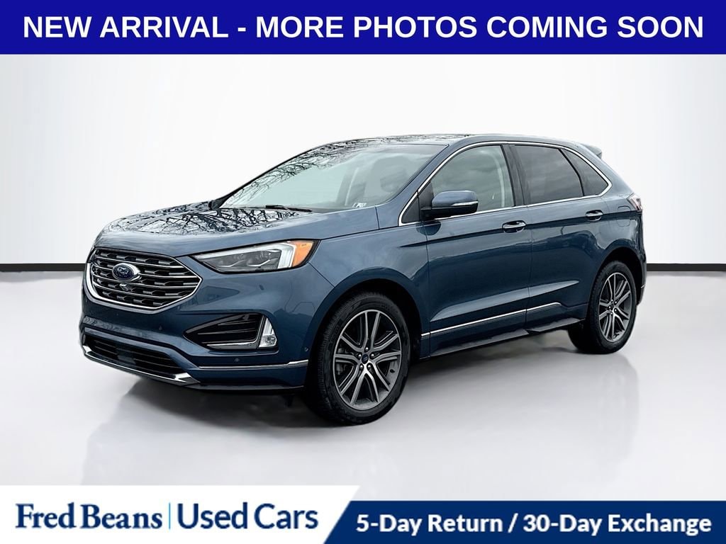 Elevate your driving experience with this exceptional 2019 Ford Edge Titanium. This stunning SUV boasts a captivating Blue exterior, complemented by a well-appointed interior that exudes sophistication and comfort.